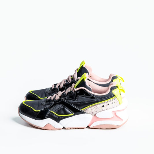 حذاء بوما نوفا 2 '90s بلوك' | سنيكرز نسائي جريء لللايف ستايل | أسود، أصفر فاقع ووردي فاتح