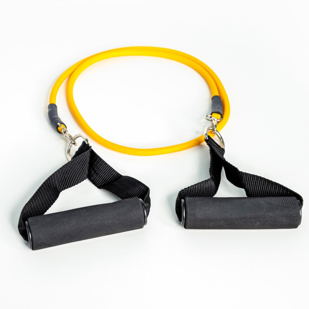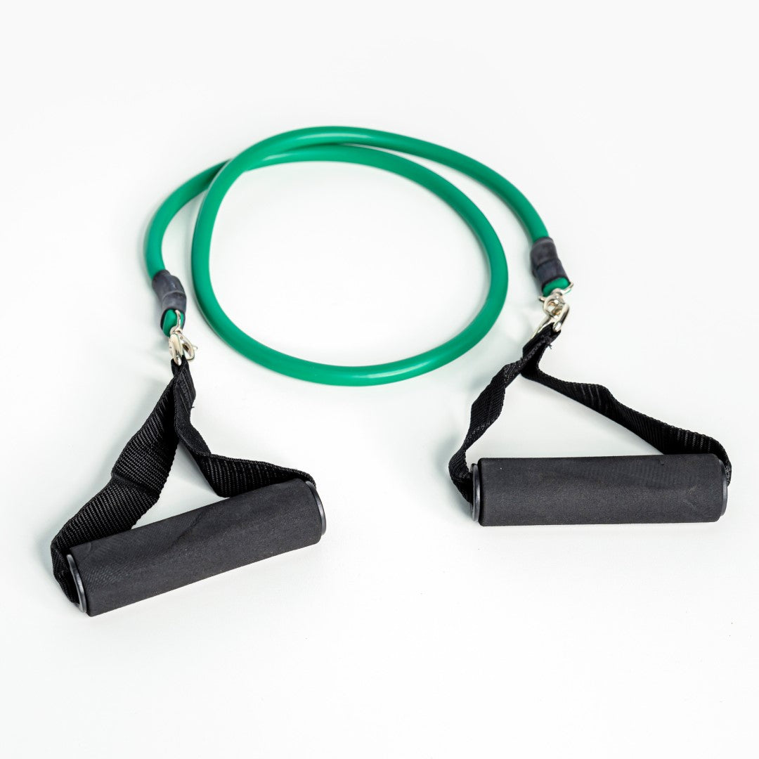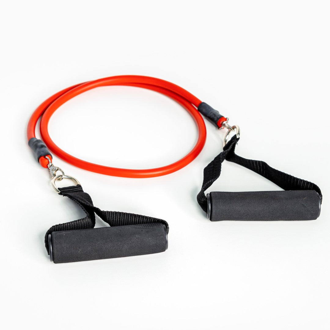 - Five Color-Coded, Stackable Resistance Tubes: A full set of bands ranging from 10lbs to 30lbs, which can be combined for a total resistance of up to 100lbs (45kg).