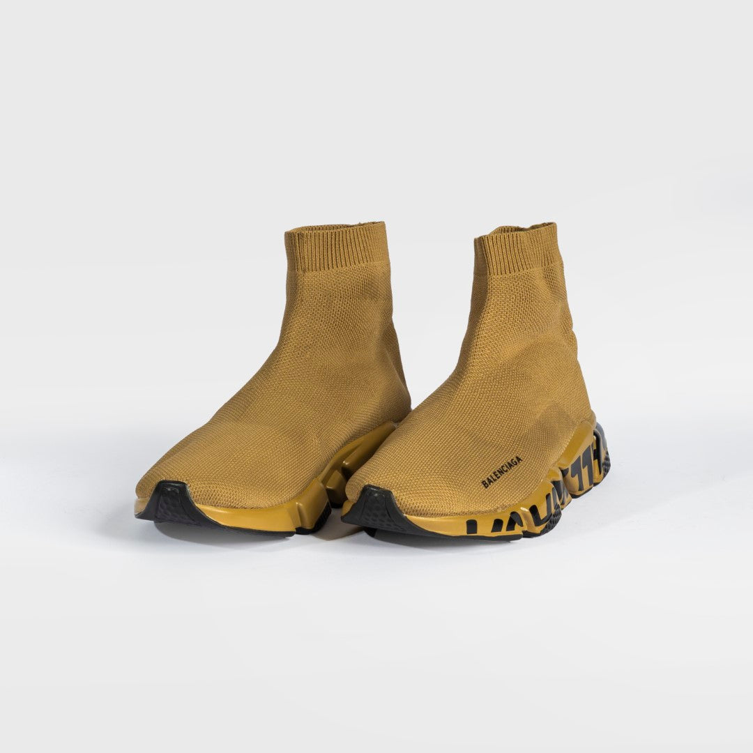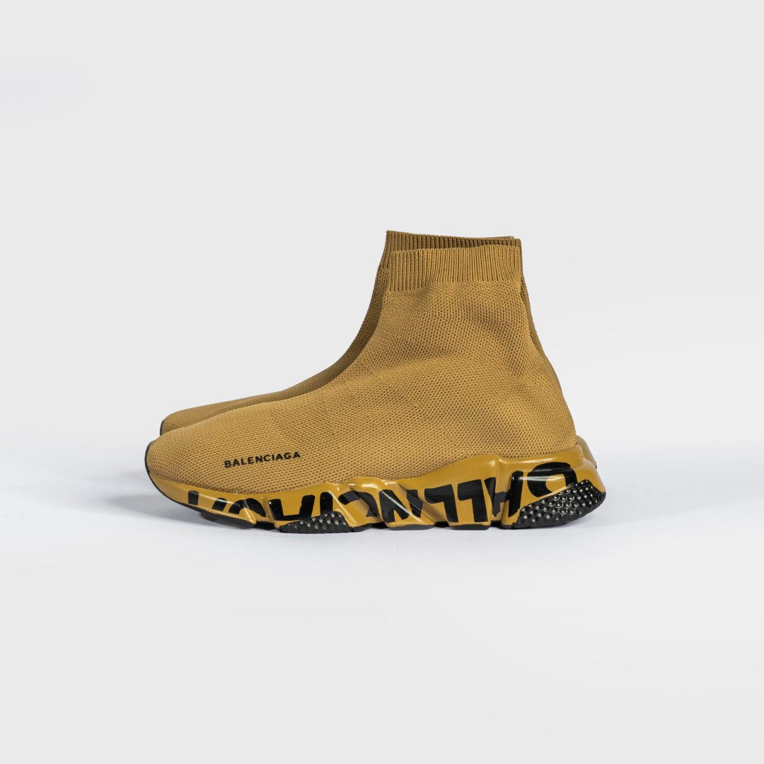 Balenciaga Speed Trainer Graffiti Sole | Lightweight High-Top Sock Sneaker in Mustard Yellow | Premium Performance & Lifestyle Footwear for Men & Women in Egypt