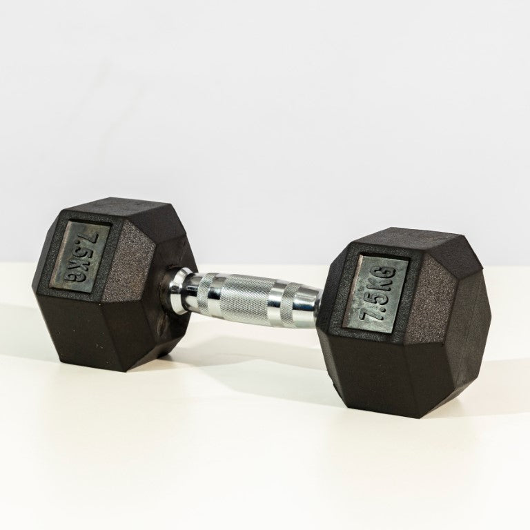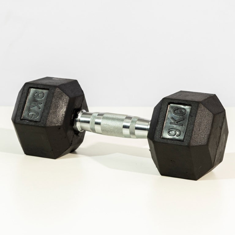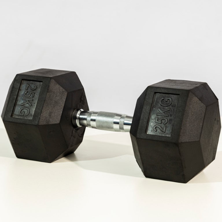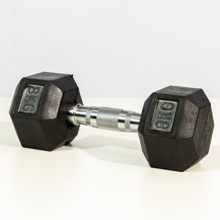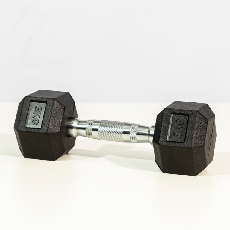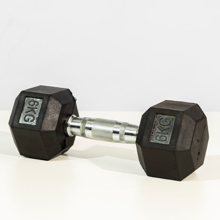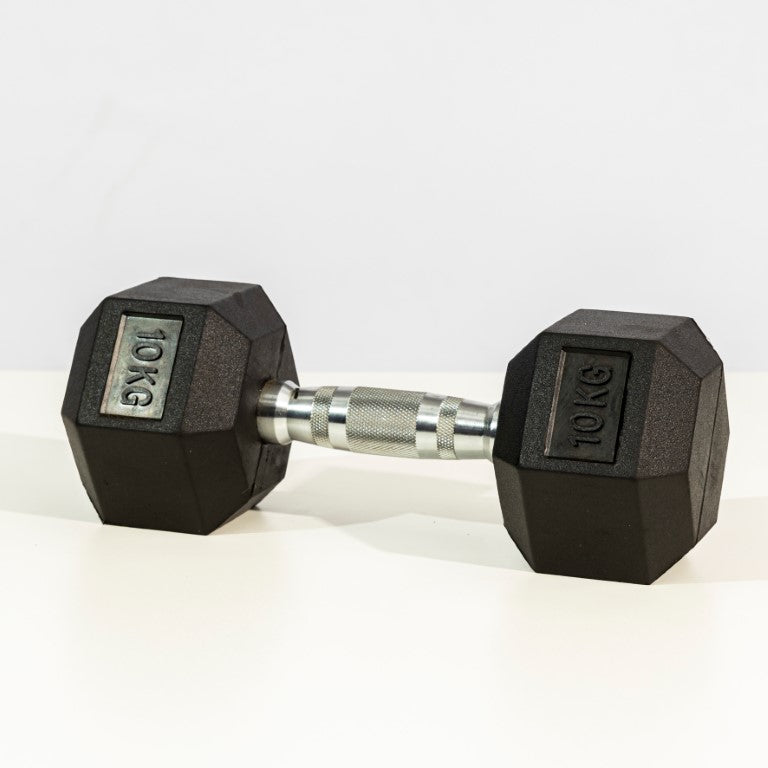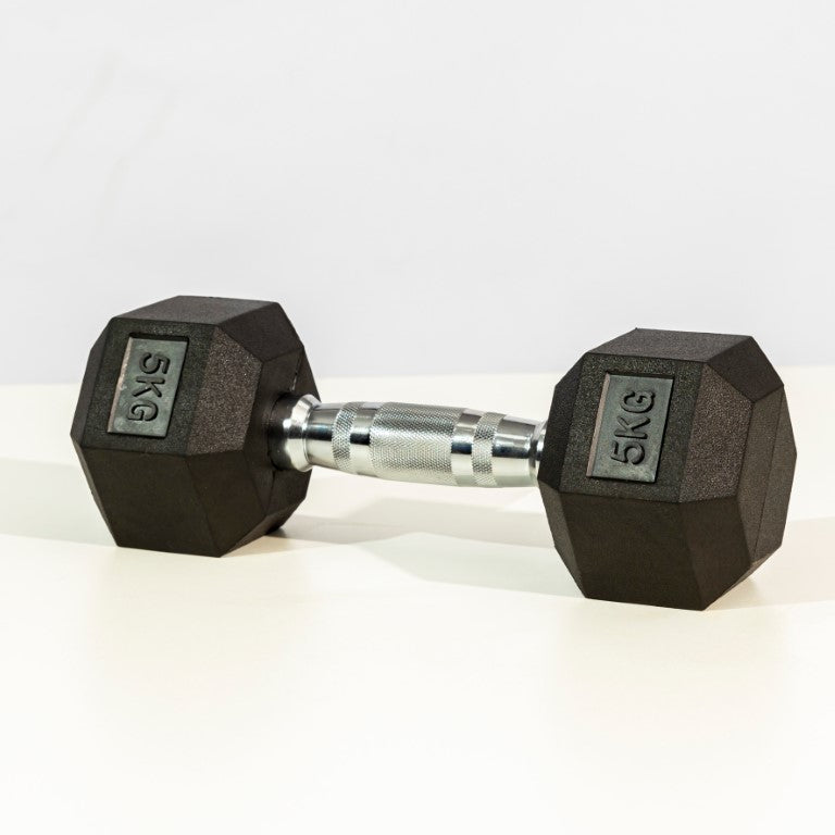 - Anti-Roll Hexagonal Design: The six-sided, rubber-encased heads prevent the dumbbell from rolling away between sets.