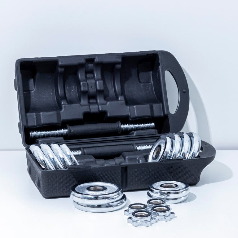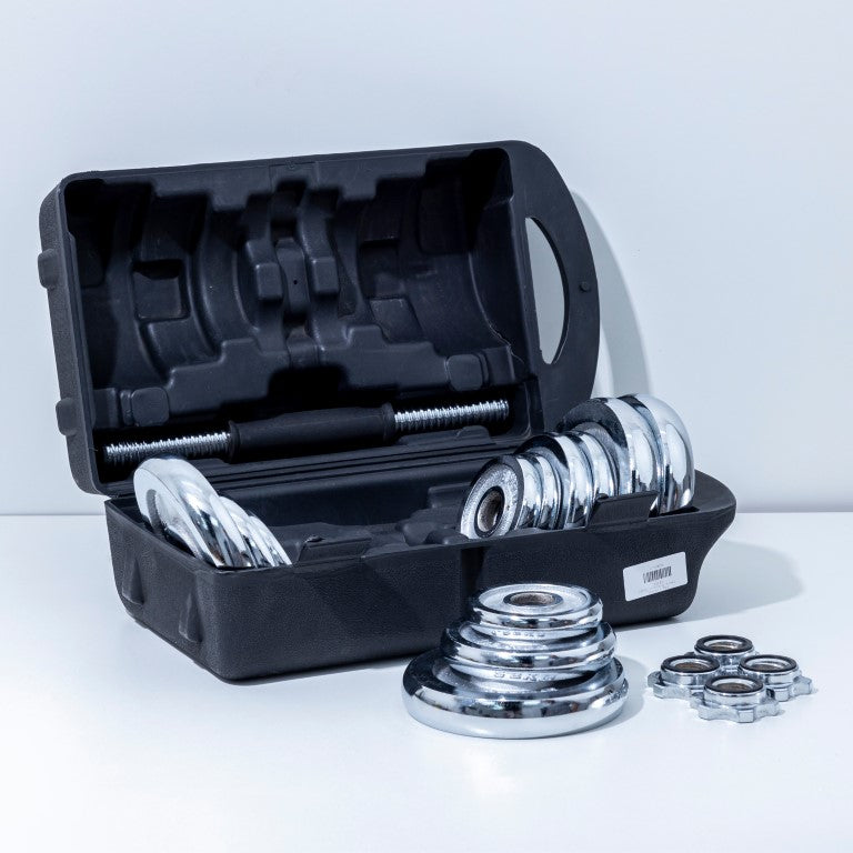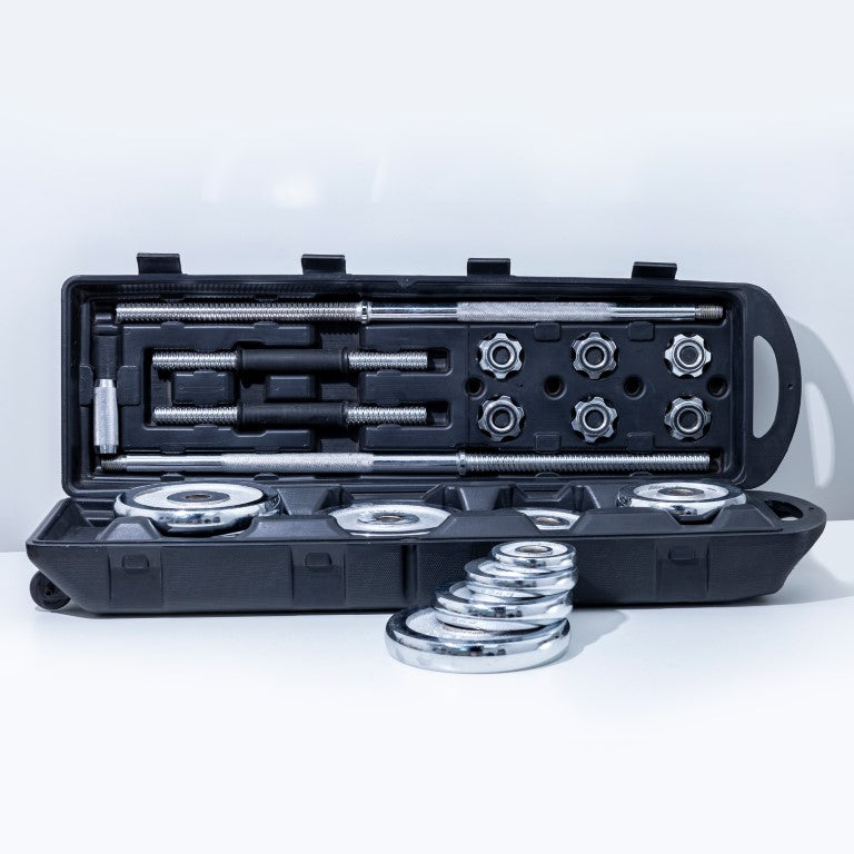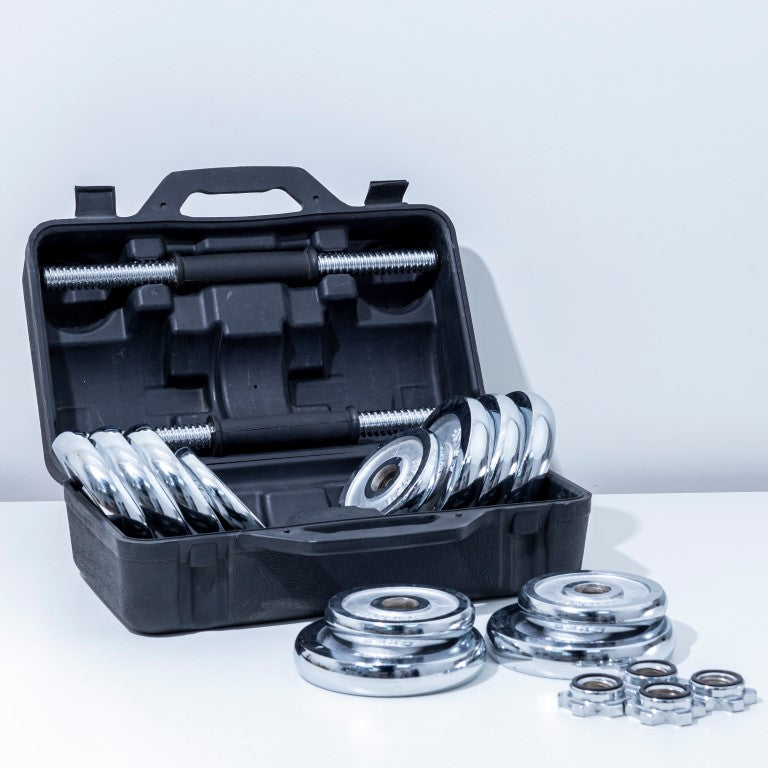 Athlete Home Pro Chrome Adjustable Dumbbell Set | Complete Home Gym Weight Kit with Carry Case | Perfect for Full Body Workouts, Strength Training & Bodybuilding 2 Hand Bars and Plates