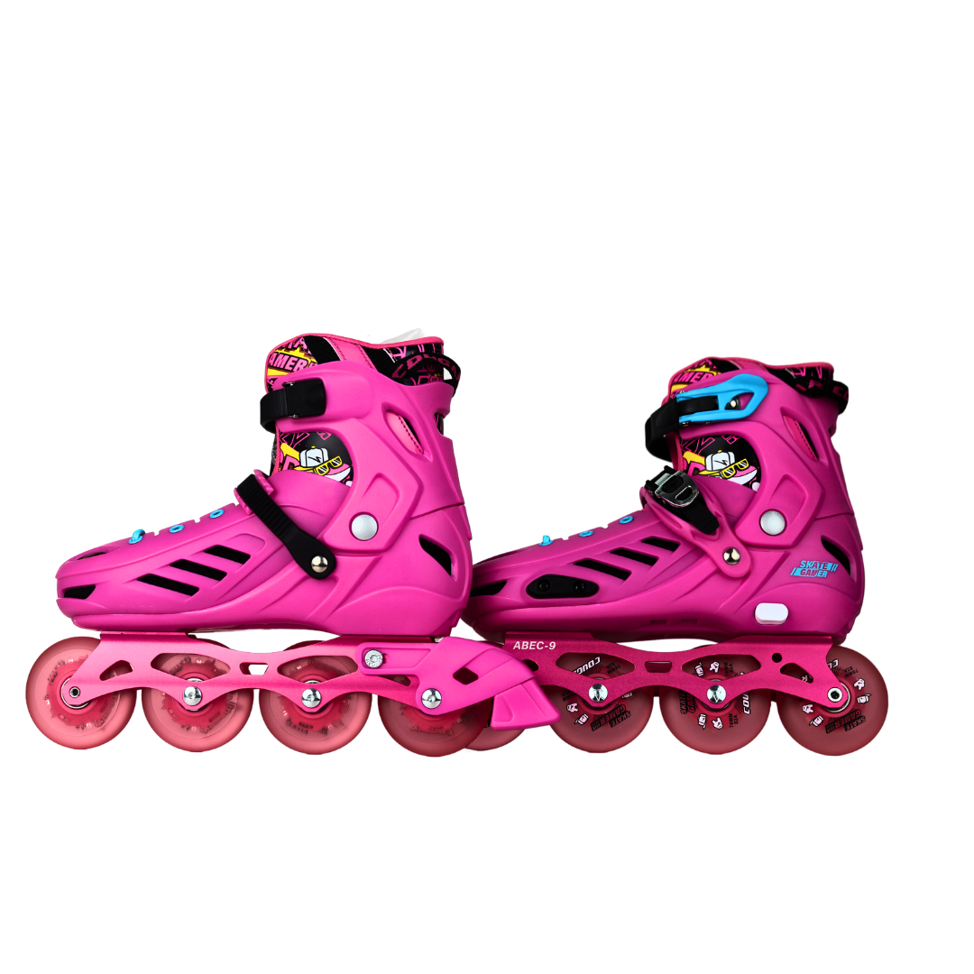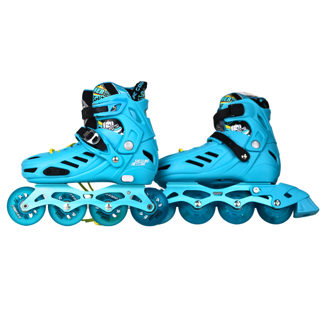 - حذاء خارجي صلب قابل لتعديل المقاس: آلية بسيطة بزر ضاغط تتيح لك تعديل مقاس السكيت بسهولة لضمان ملاءمة مثالية ومخصصة لك.
