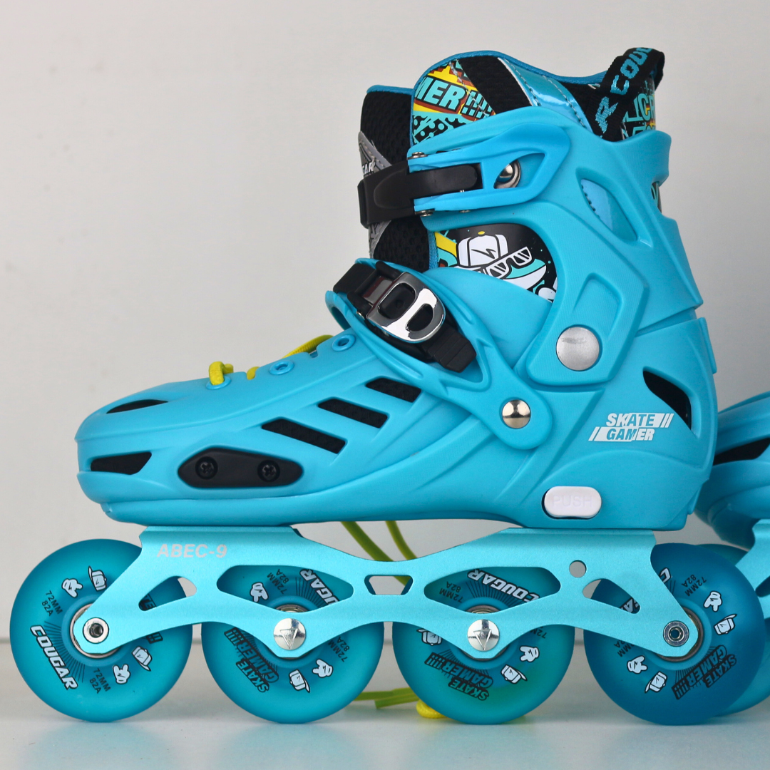 سكيت كوجر جيمر الاحترافي | باتيناج إنلاين عالي الأداء قابل للتعديل مع رمان بلي ABEC-9 | سكيت للجنسين للياقة البدنية والتزلج في المدينة للسرعة والتحكم - أزرق سماوي