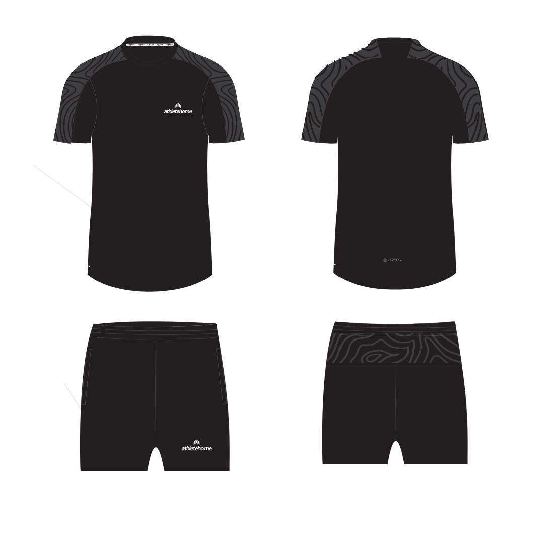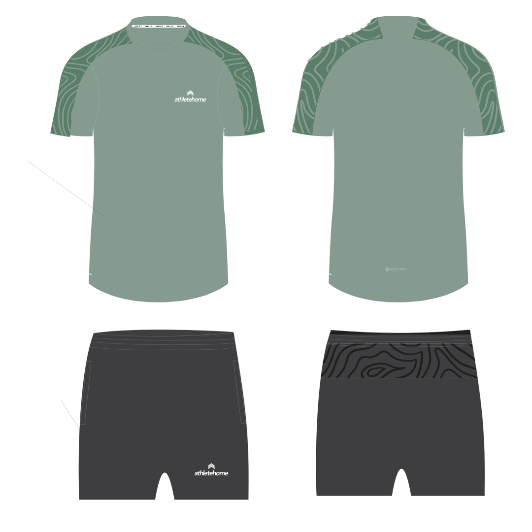 طقم 'ابيكس' للأداء الرياضي للرجال من Athlete Home | تيشيرت طارد للعرق بطبعة تضاريس وشورت رياضي | للجيم والجري والتدريب في مصر