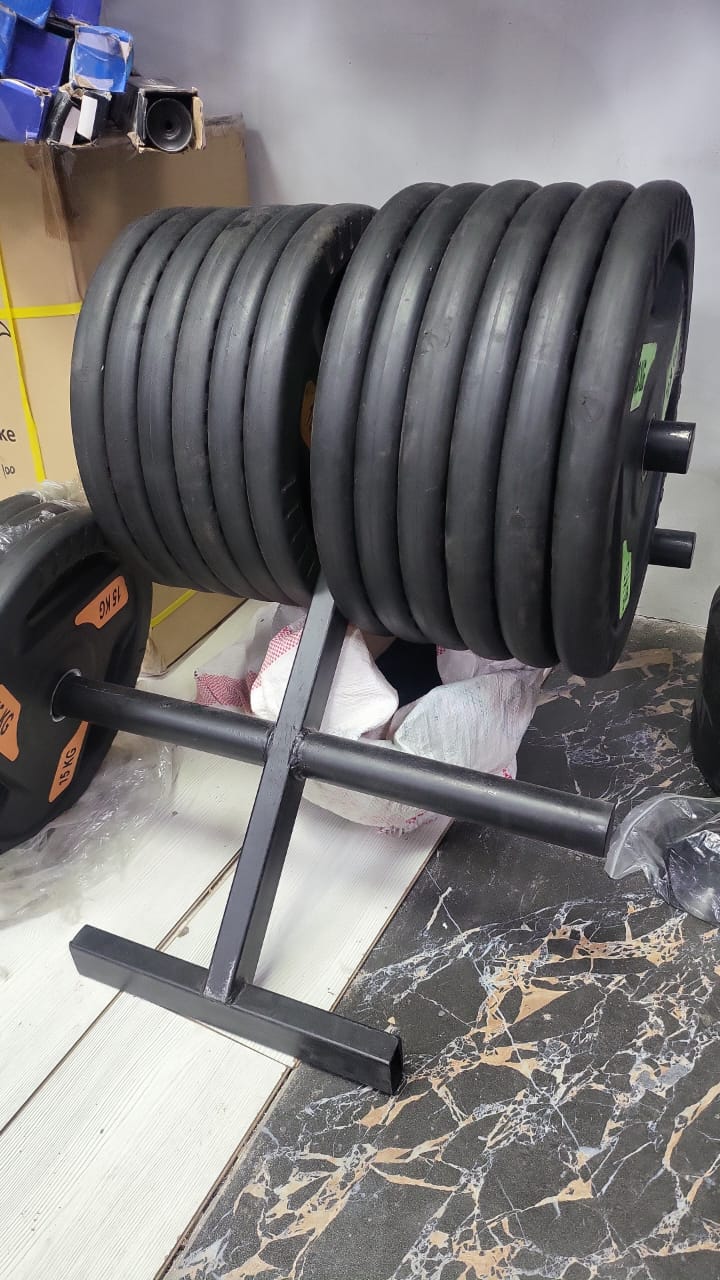 حامل الأوزان الاحترافي "الترسانة" من أثليت هوم: بدون اوزان ستاند شديد التحمل على شكل حرف A لتخزين الأوزان الأولمبية وتنظيم الجيم المنزلي